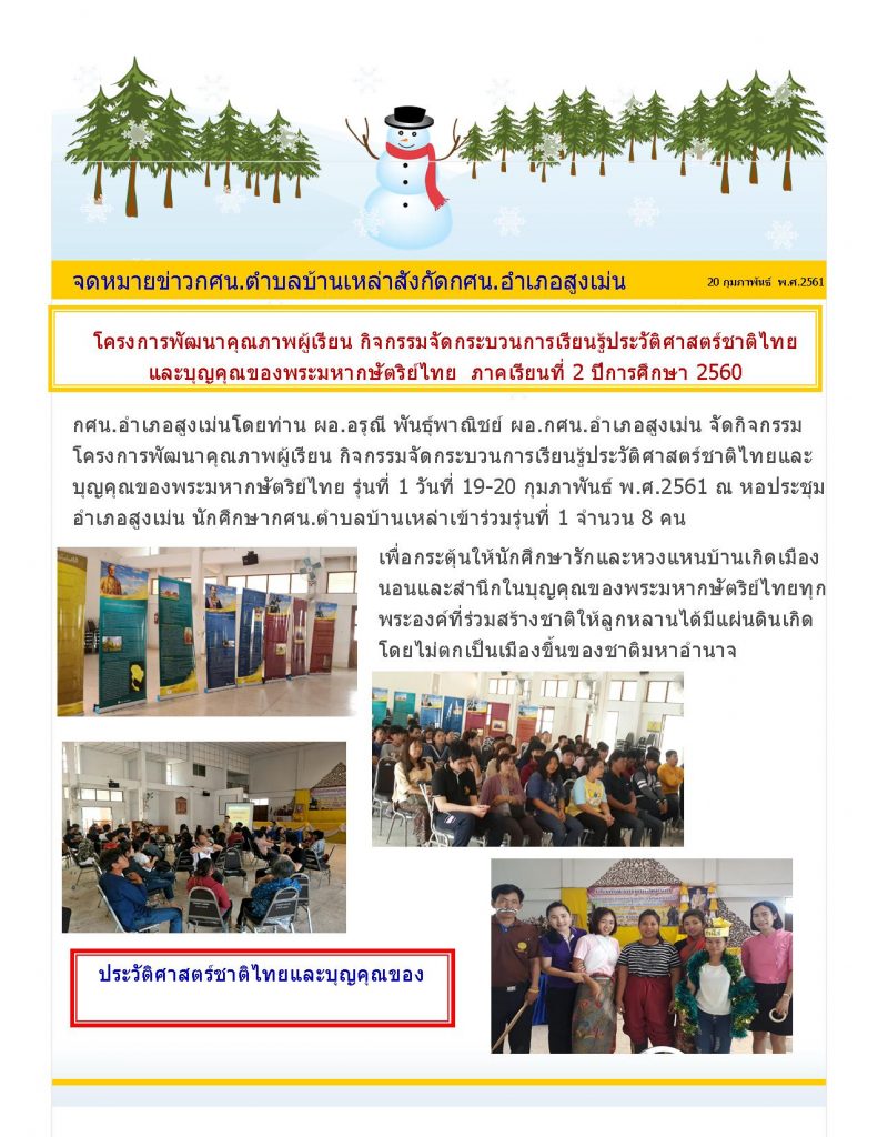 จดหมายข่าวกิจกรรมพัฒนาผู้เรียน : กิจกรรมจัดกระบวนการเรียนรู้ประวัติศาสตร์ชาติไทยและบุญคุณของพระมหากษัตริย์ไทย